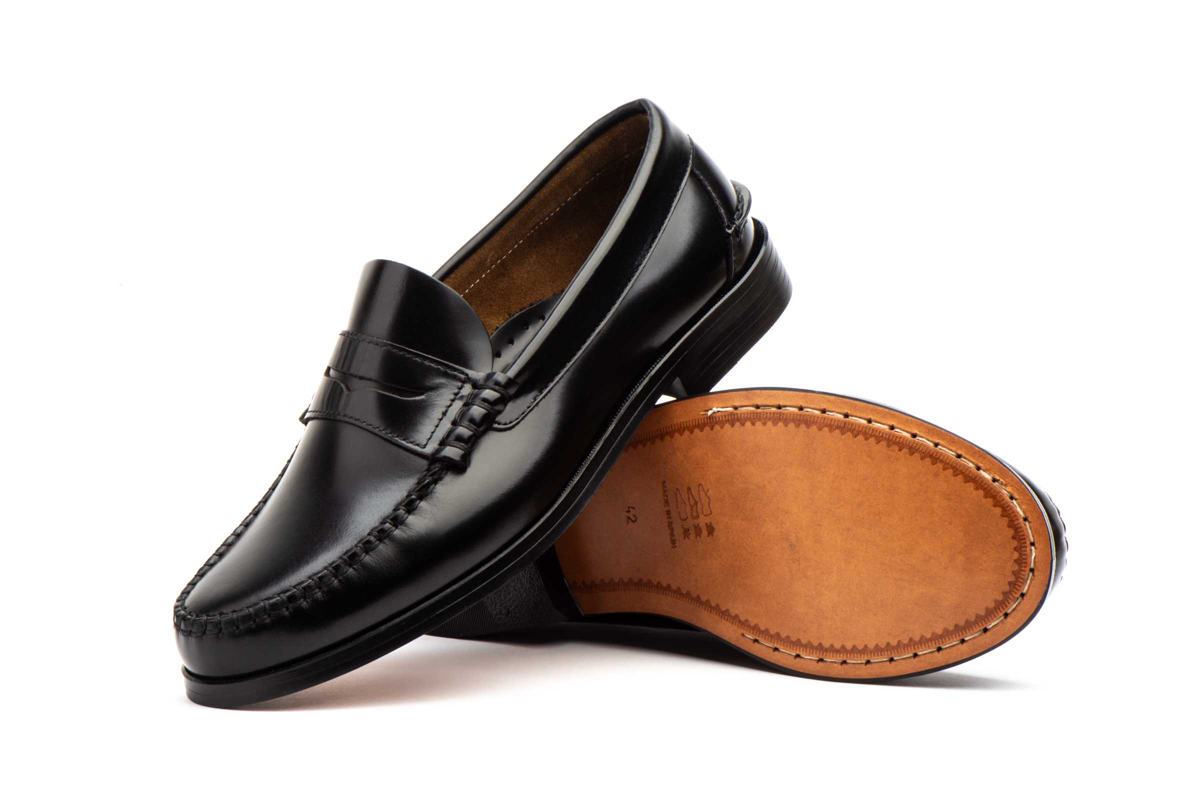 Mocasín de piel para hombre modelo 1003 clásico con suela de cuero