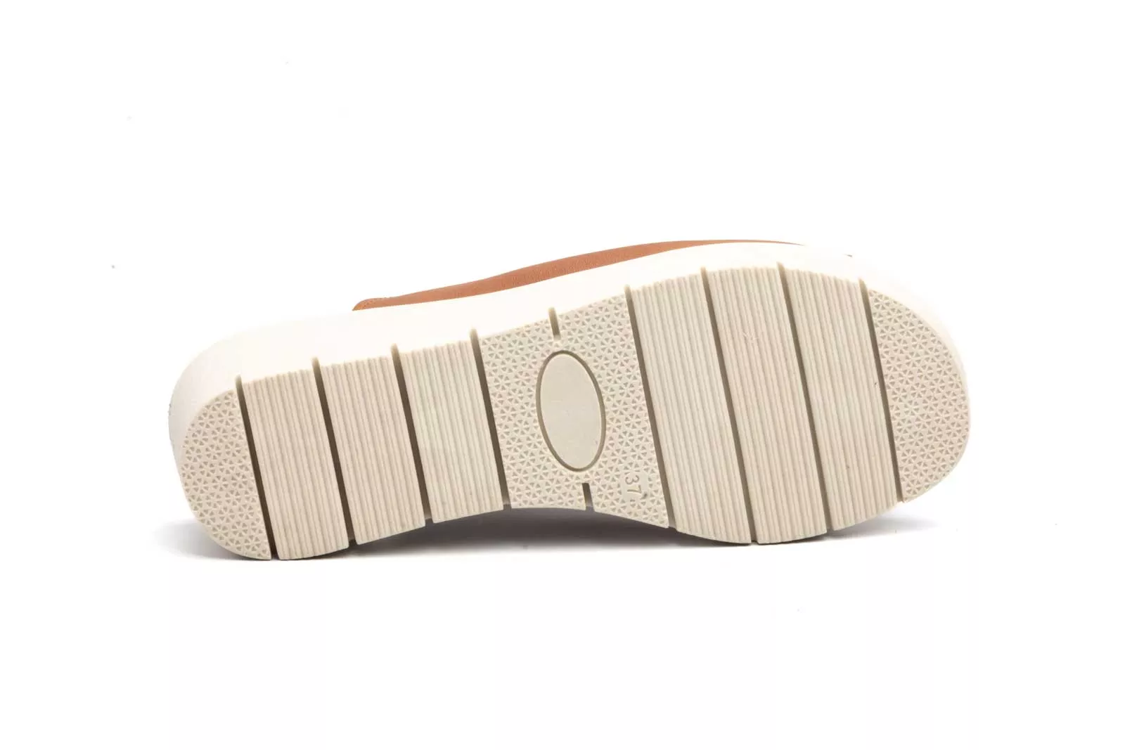 ndalia de piel para mujer modelo 131 color Cuero: El confort premium definitivo. Calzado de verano para señora en piel, fabricado en España. Comodidad y estilo diario en un diseño moderno y versátil con cuña alta ergonómica para un mayor bienestar.