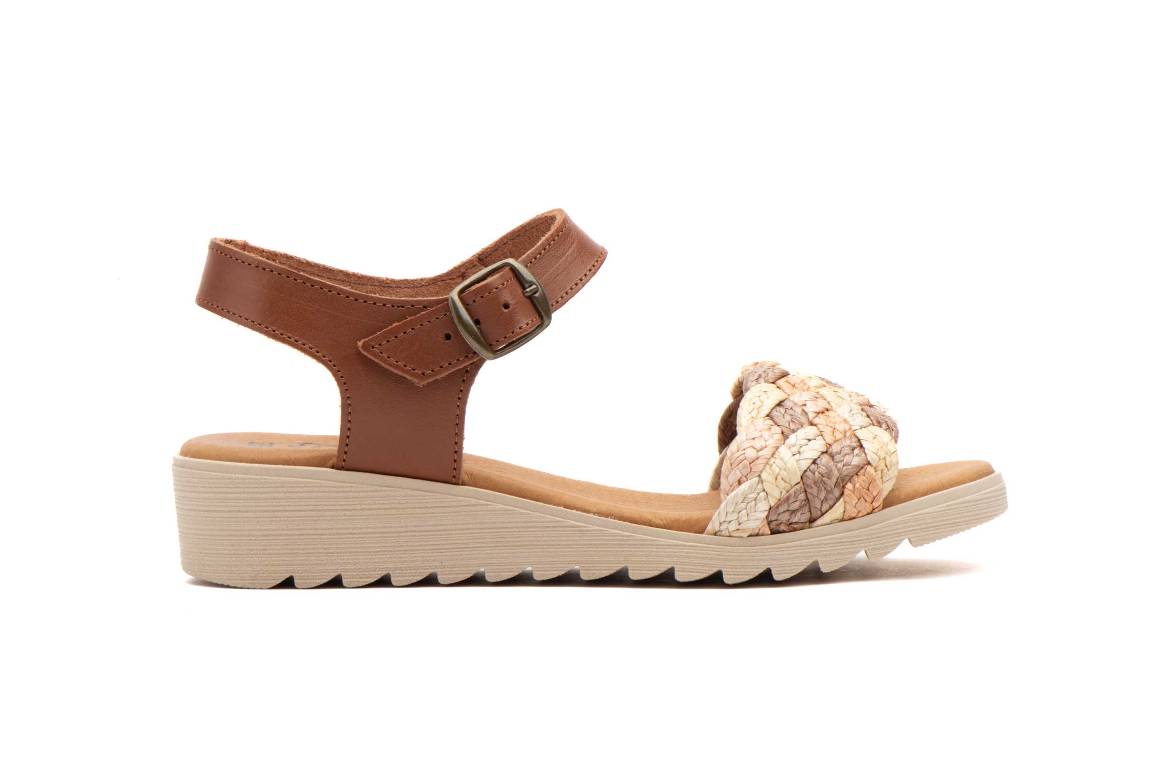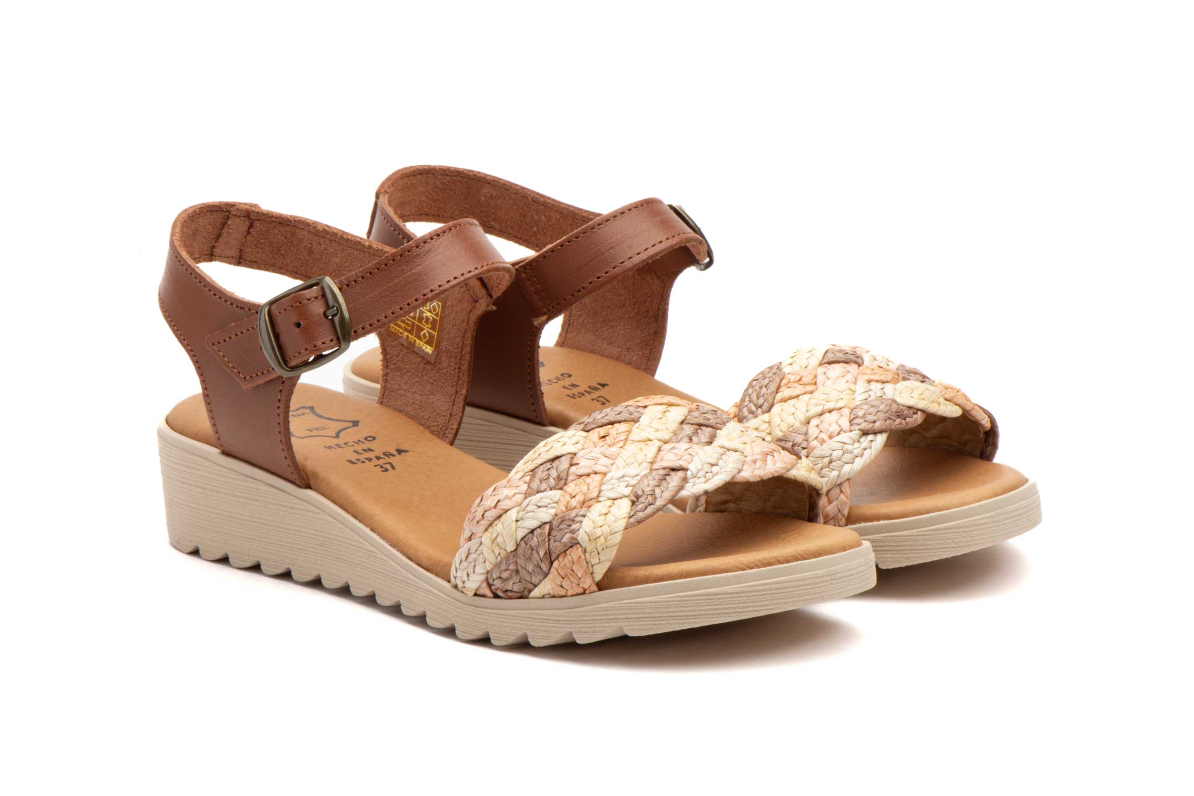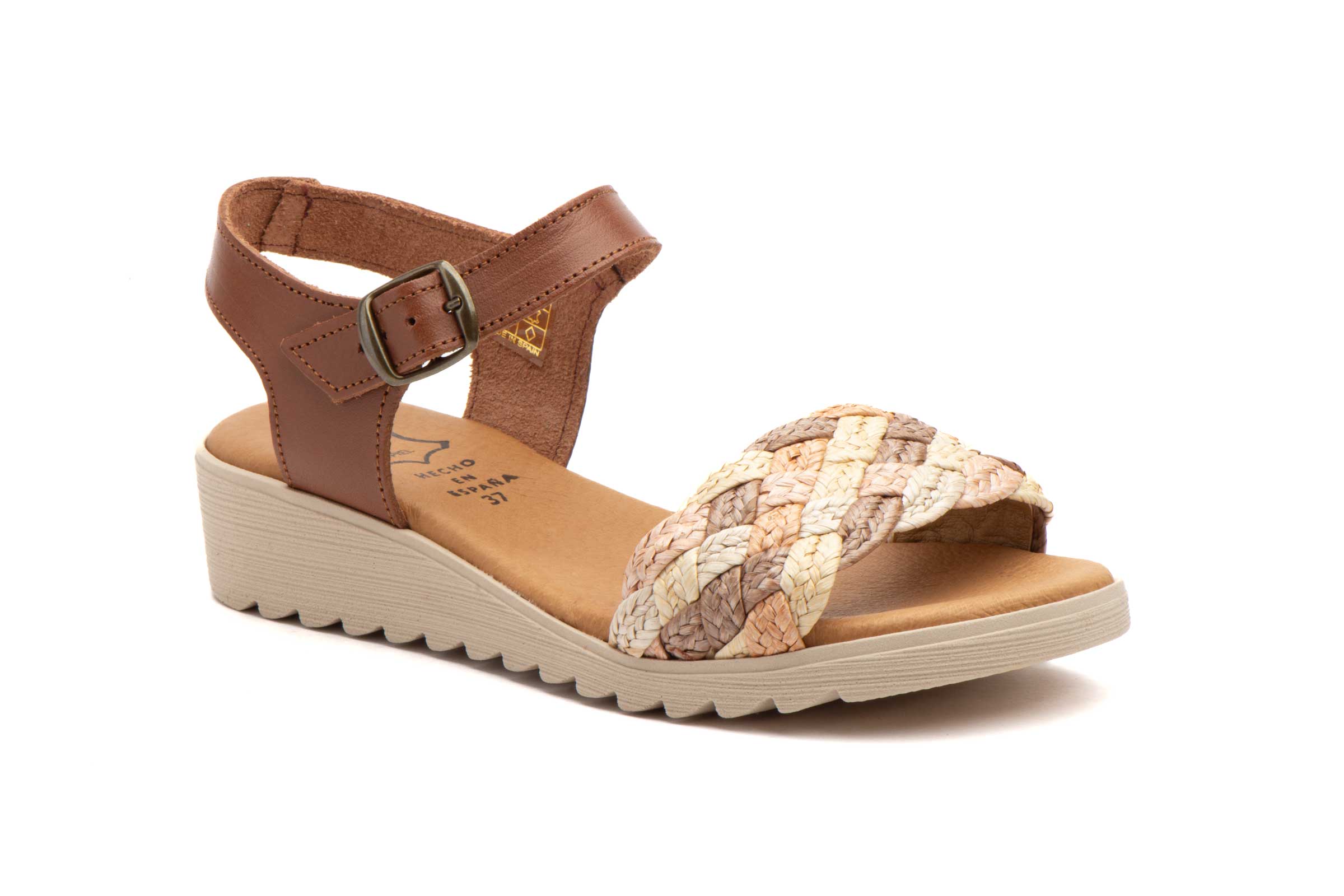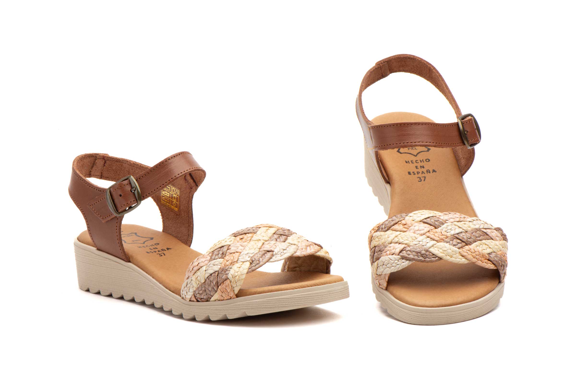 El sandalia piel mujer modelo AE-226 destaca por su atractiva pala trenzada que combina diferentes texturas y tonalidades naturales. Este detalle artesanal no solo aporta un aire rústico y sofisticado, sino que permite una ventilación constante del pie. Su diseño incluye una tira trasera con cierre de hebilla metálica ajustable que asegura una sujeción perfecta en cada paso. Este modelo es un referente en el calzado cómodo mujer por su capacidad para adaptarse a eventos casuales y salidas diarias con total elegancia.