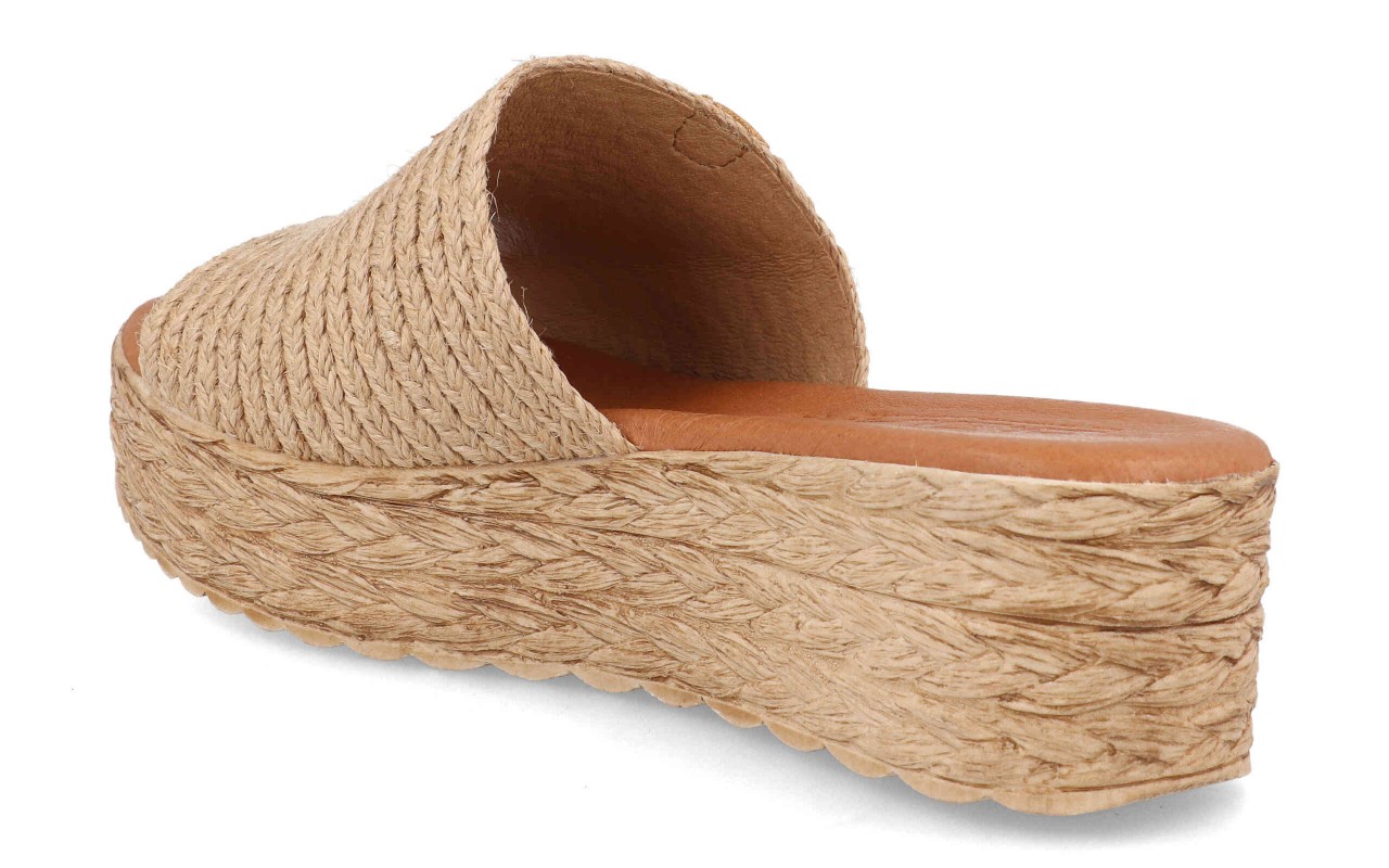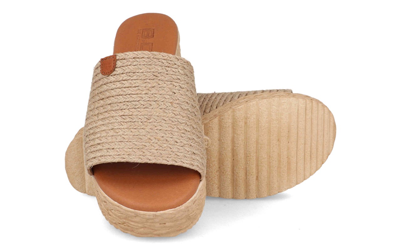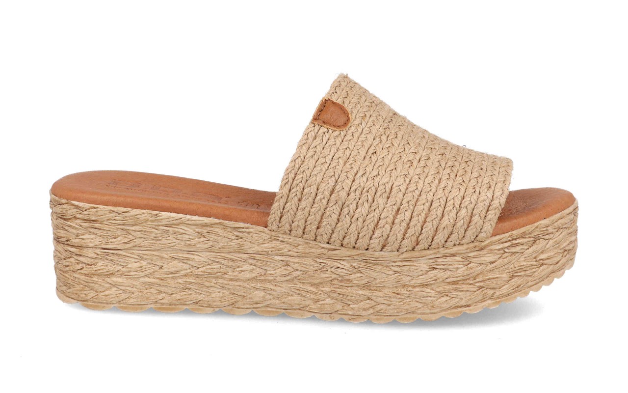 La sandalia plataforma mujer modelo 210 color natural fabricada en España destaca por su estética veraniega y su diseño minimalista. Su pala ancha elaborada con fibras trenzadas aporta un toque artesanal muy atractivo que encaja perfectamente con los looks de verano. Este tipo de acabado transmite una sensación natural y fresca que se ha convertido en una tendencia muy popular en el calzado femenino.