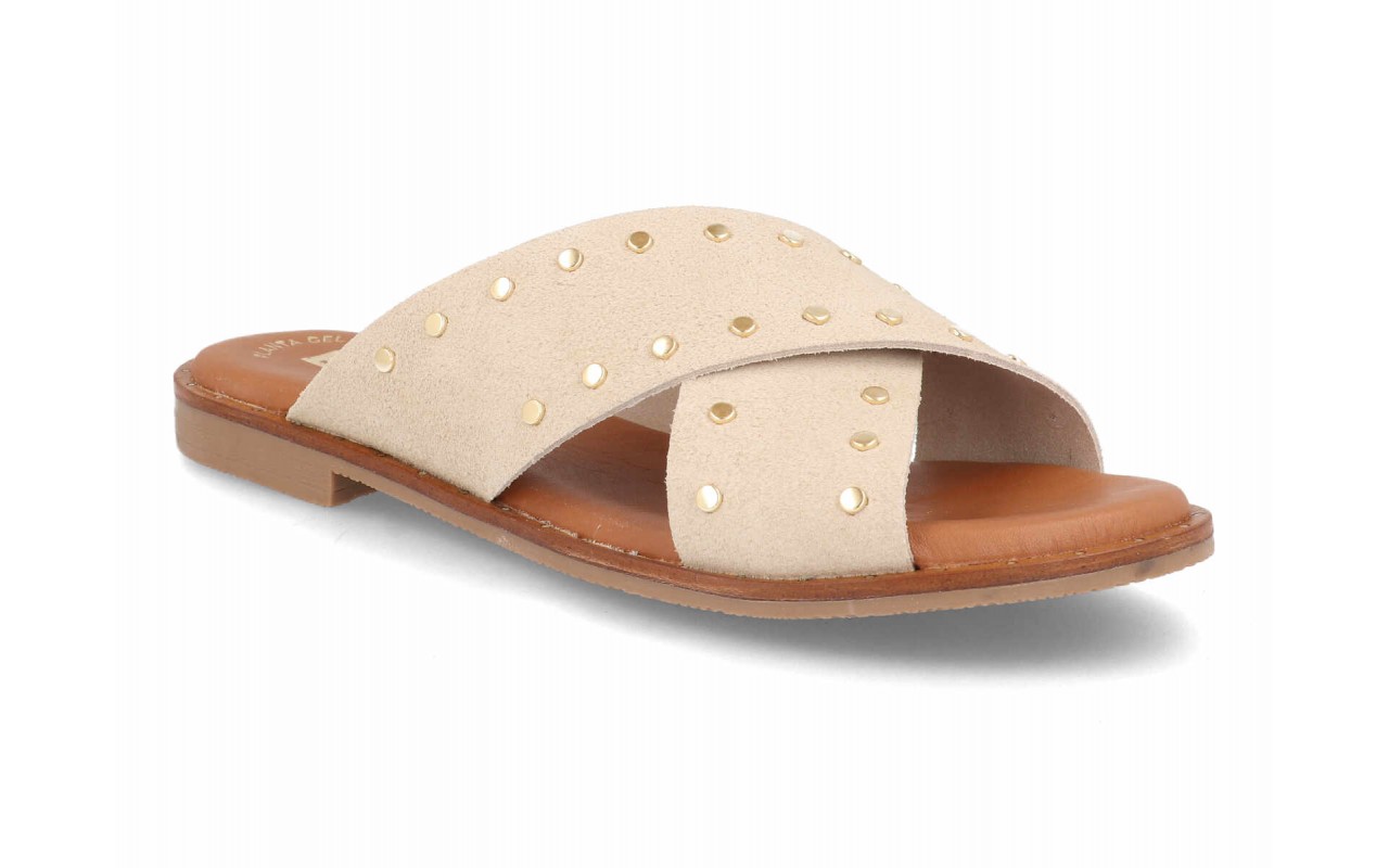 Las sandalia señora piel modelo 11658 combinan diseño contemporáneo, comodidad y materiales de calidad para ofrecer una opción ideal dentro del calzado femenino de verano. Este modelo destaca por su estética moderna con tiras cruzadas decoradas con pequeñas tachas metálicas, un detalle que aporta personalidad y estilo sin renunciar a la elegancia.