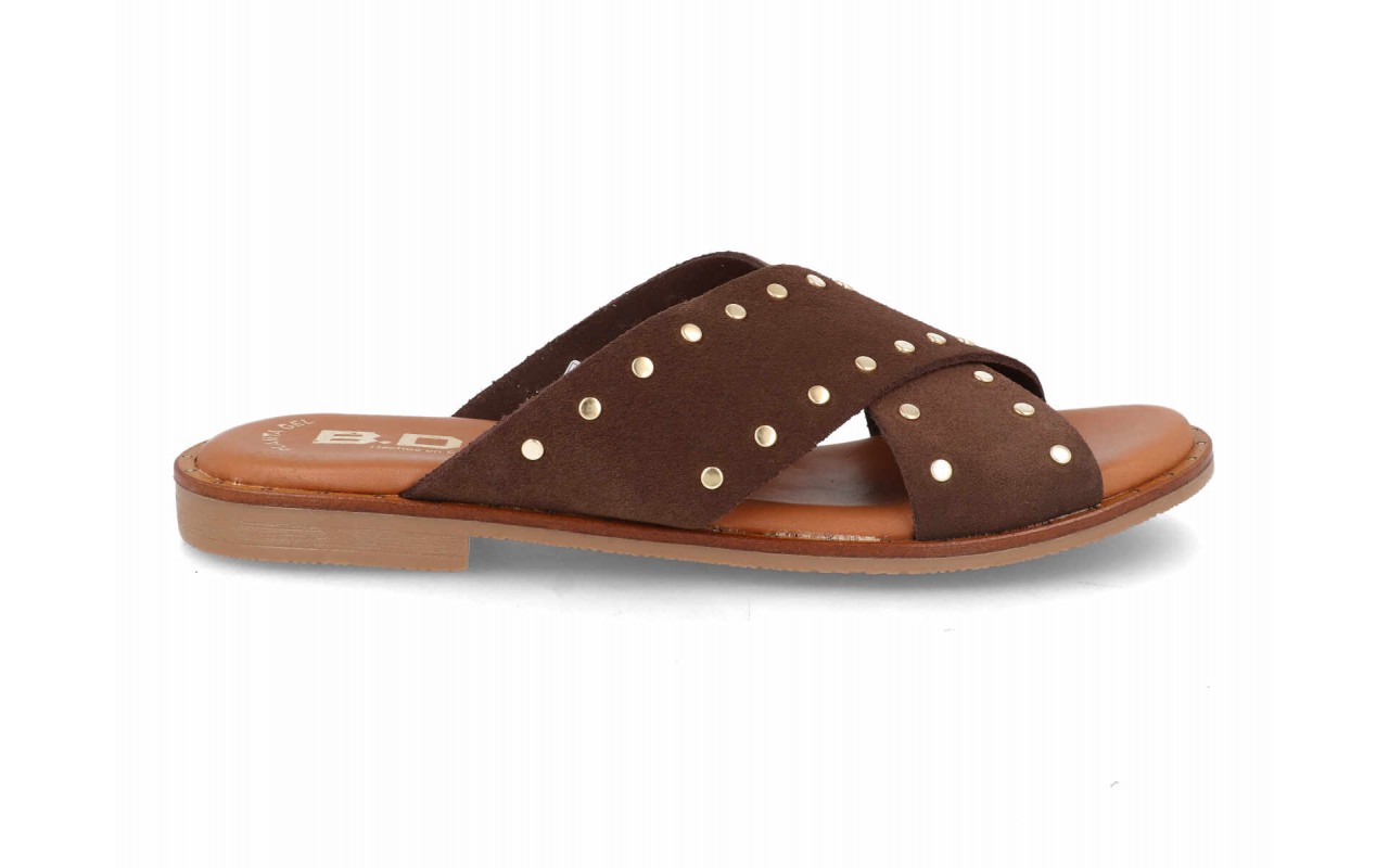 Uno de los elementos más atractivos del modelo es la incorporación de pequeñas tachas metálicas distribuidas sobre las tiras. Este detalle decorativo aporta un toque moderno y dinámico que sigue las tendencias actuales del calzado femenino, añadiendo carácter al diseño sin perder la elegancia.