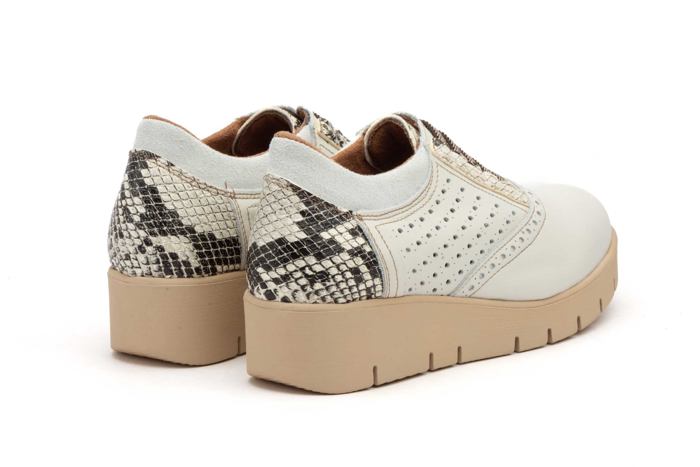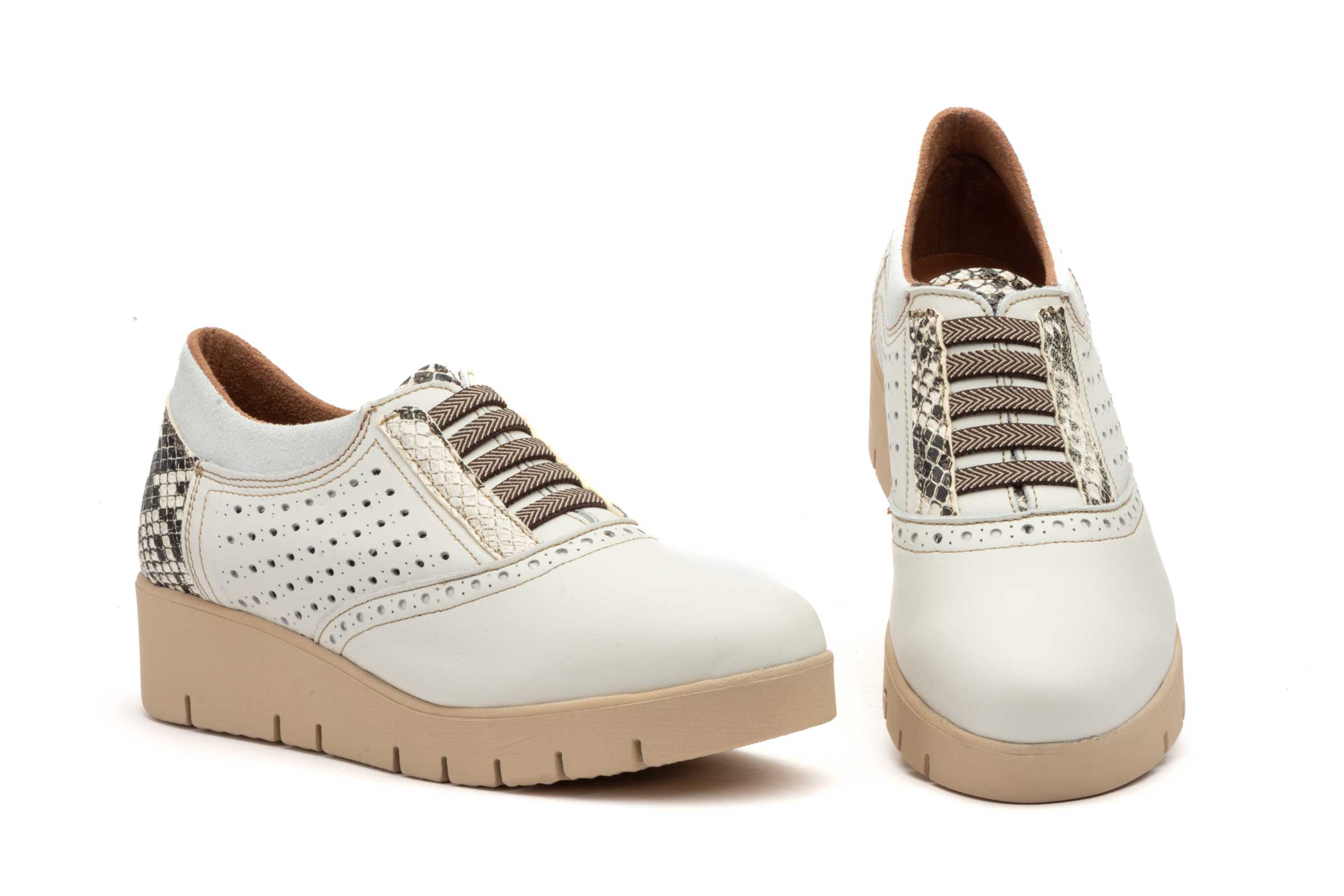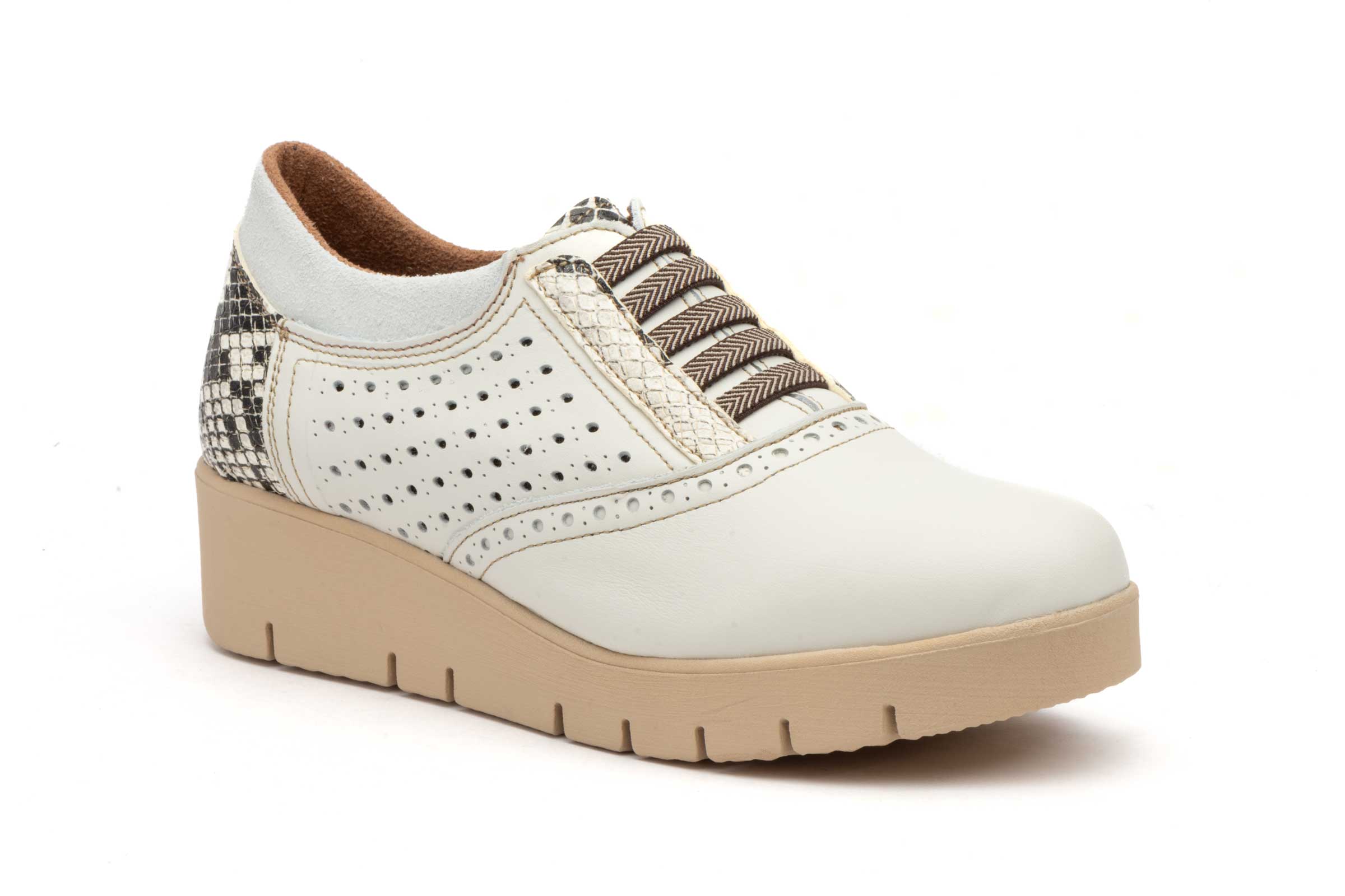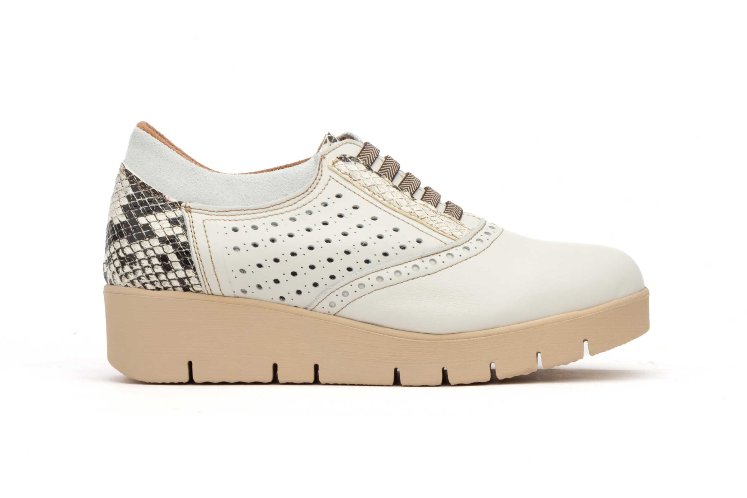 Calzado deportivo casual de señora en piel, fabricado en España. Comodidad y estilo diario en un diseño moderno y versátil con cuña ergonómica para un mayor bienestar.