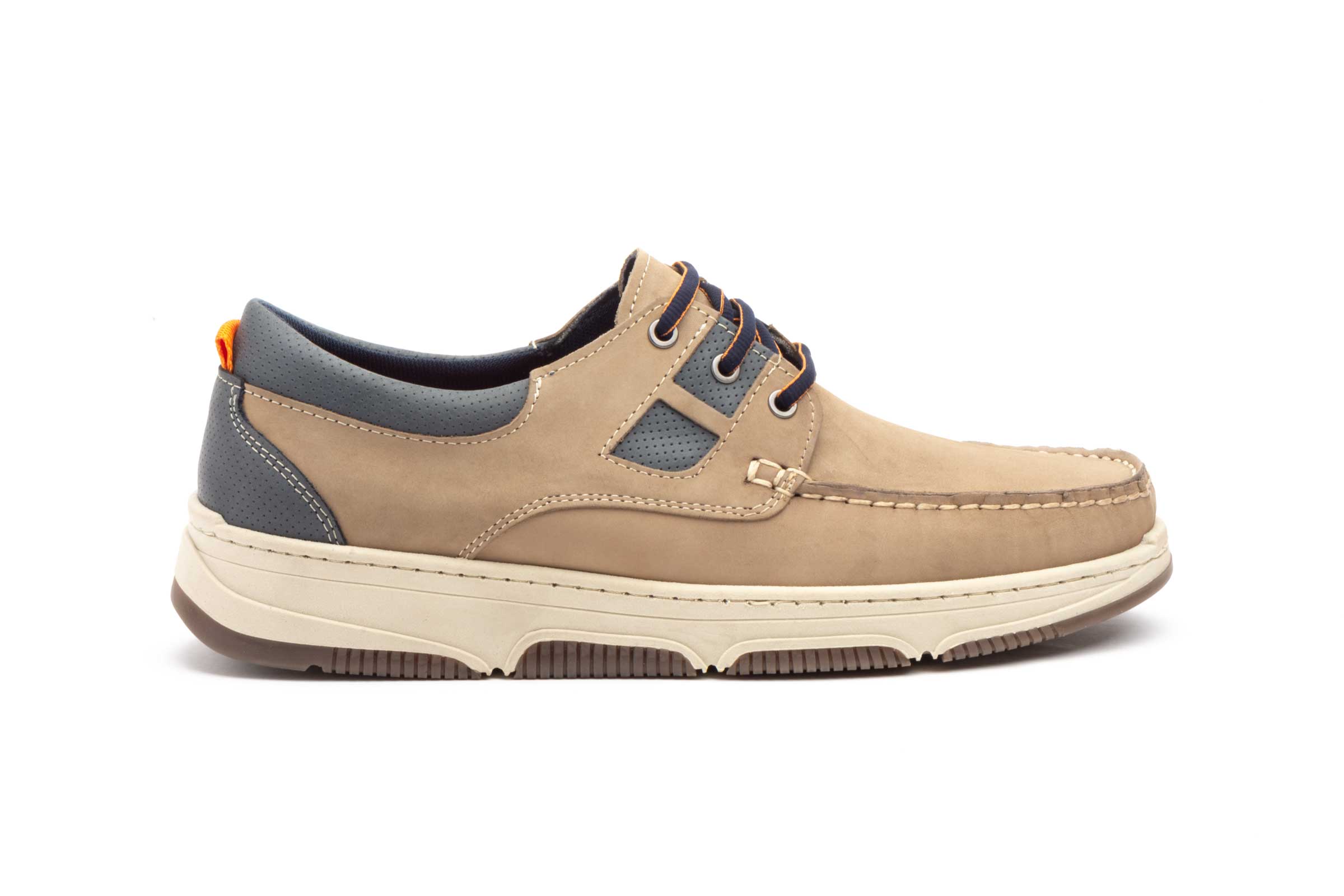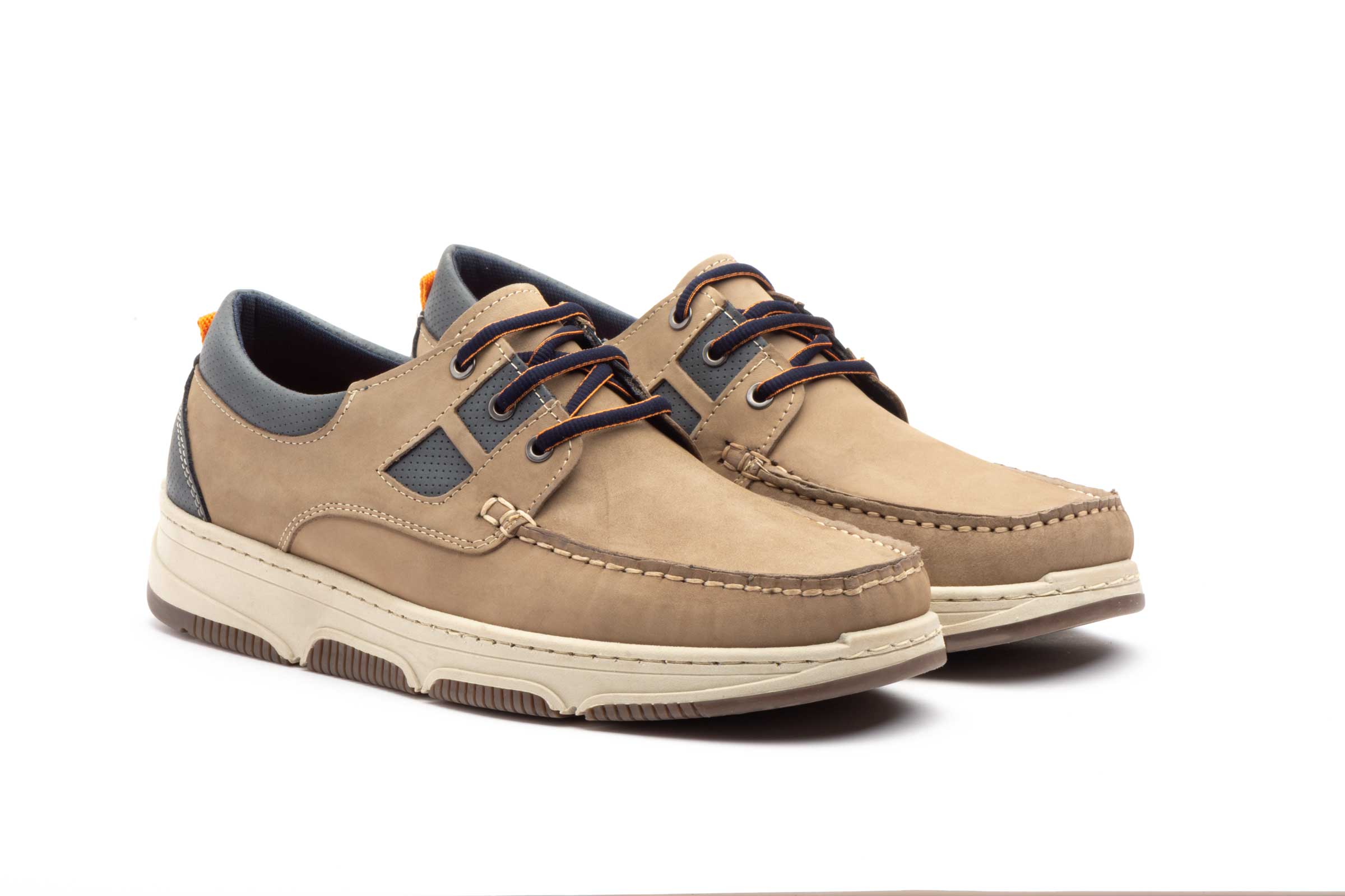 El diseño del zapato casual caballero piel R83-7210 se inspira en el estilo náutico, caracterizado por su costura visible en la parte del empeine y su estructura cómoda y flexible. Este tipo de diseño es muy popular por su estética casual y su gran comodidad.